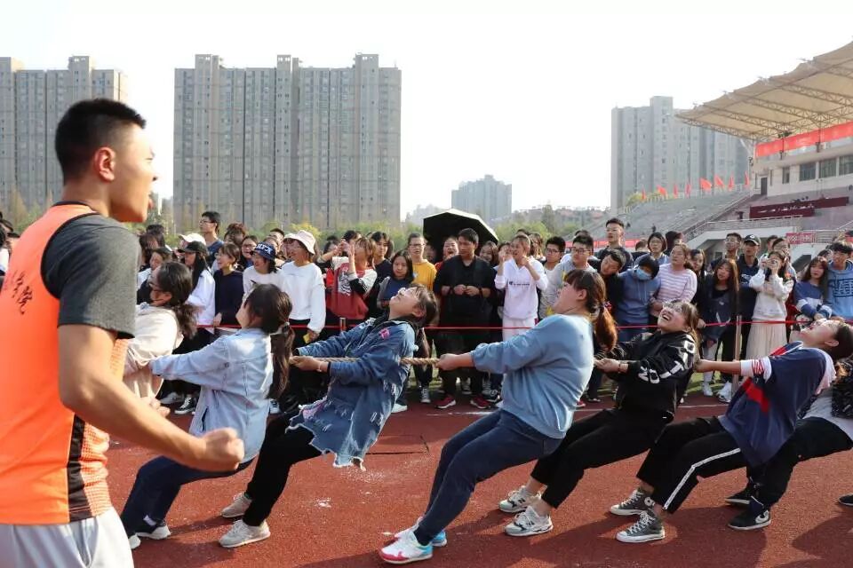 率先开始的是拔河比赛,随着整齐划一的号子声响起,每一位运动员都把自己全部的力量使在了手中的绳子上,心紧紧地拧在了一起,一心为学院争光。