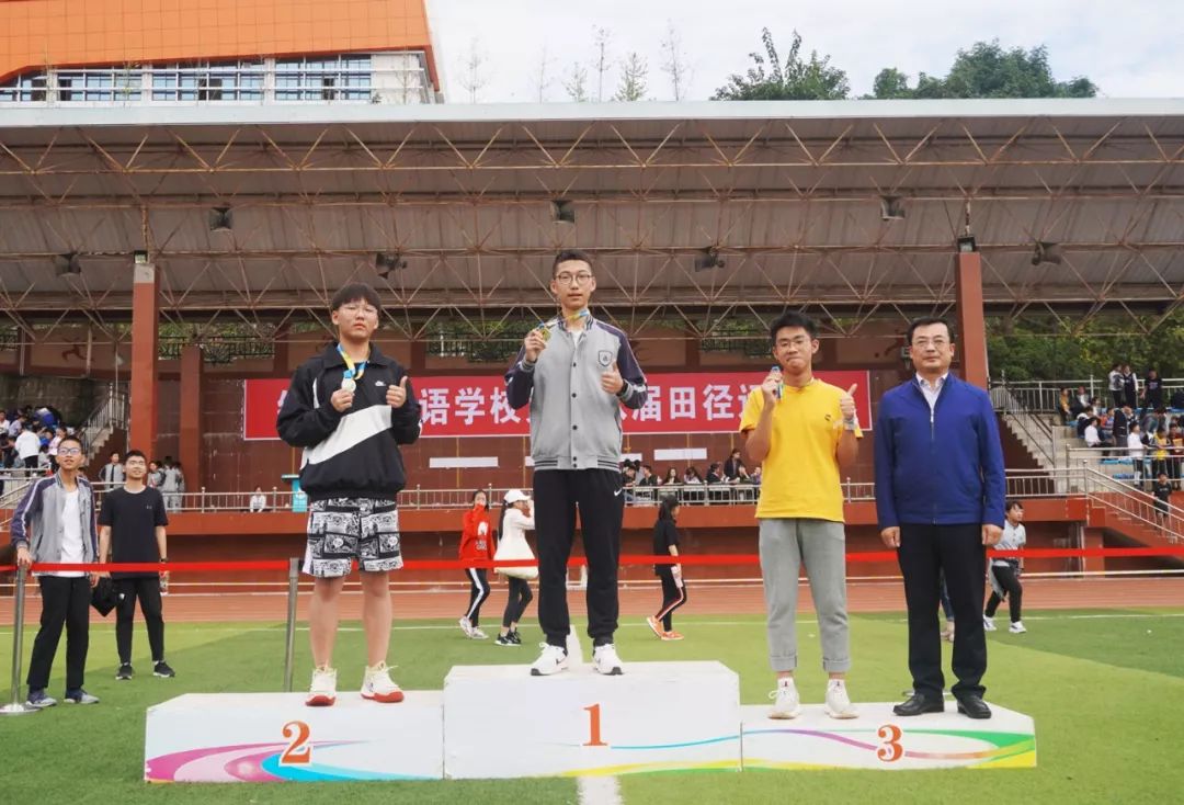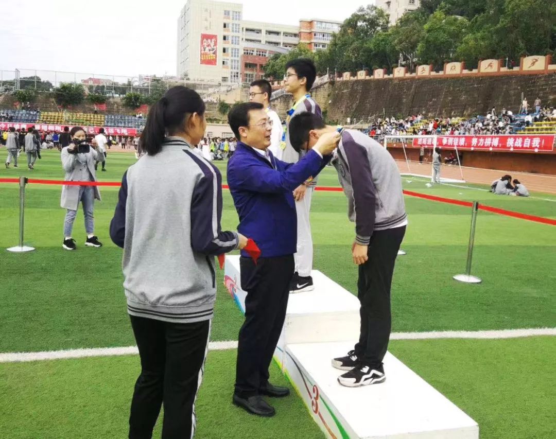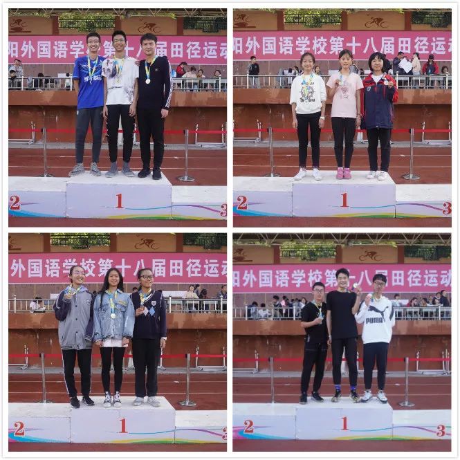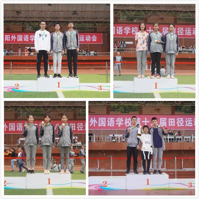 本届运动会学校首次为获奖的运动健儿们在运动场中央设立了领奖台,并为他们颁发奖杯、奖牌。