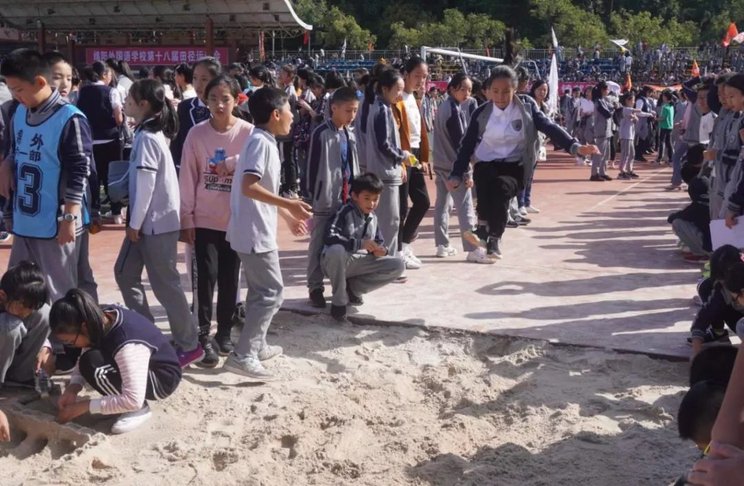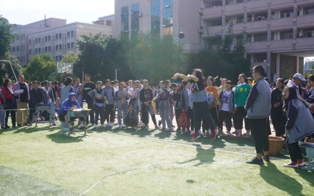 广播体操、跳绳、丢沙包等项目,让小学部体育场弥漫着中家长、老师、孩子们的欢笑。