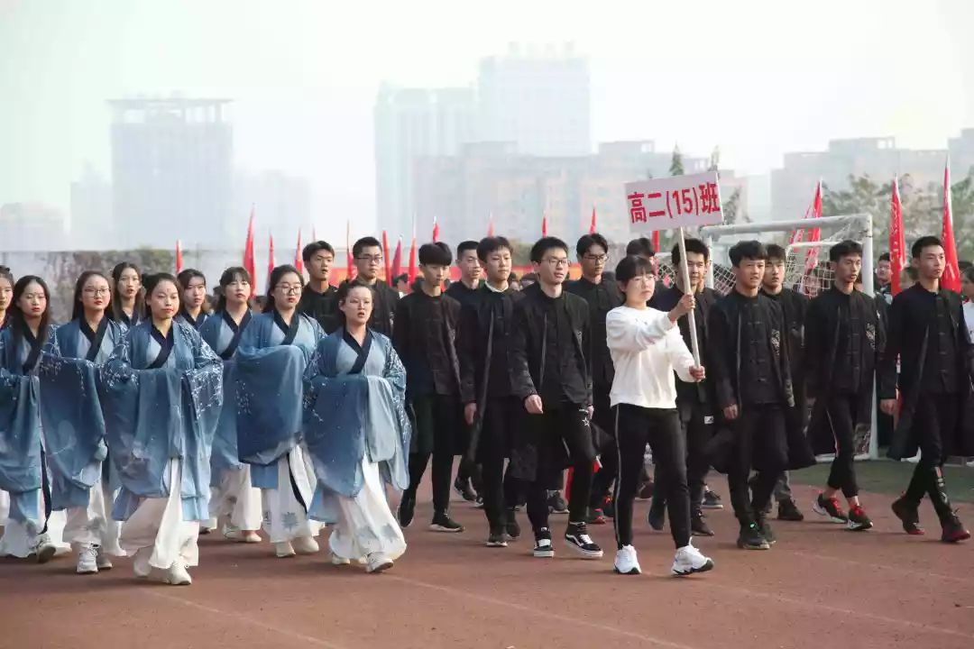 开幕式上,国旗方队、会徽方队、各班运动员方队等,喊着嘹亮的口号,昂首挺胸,精神饱满,在雄壮的音乐伴奏下,他们迈着稳健的步伐向全校师生展现了运动的活力以及参与比赛的热情,充分展现了我校学子的风采。每个班级的入场式都堪称是智慧与才华的完美诠释,口号、服装、道具、造型,各出奇招,各有创意,彰显了班级特色与个性。