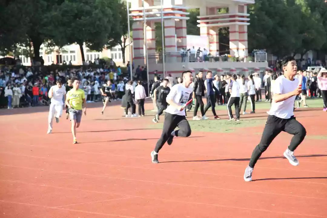 比赛过程中,每位参赛者都为了自己的目标和班集体的荣誉而拼搏。无论是长跑还是短跑,跳高还是跳远,都能看见我校运动员们矫健的身姿,昂扬的斗志,运动健儿们为学校和班级的荣誉而奋力拼搏着。运动员们“浴血奋战”,其他学生也一同欢呼雀跃着。他们源源不断地向主席台发稿,为运动员们加油,呐喊声与喝彩声混杂在一起,化作一股无形的力量,激励着运动员们竭尽全力,奋力一搏。当百米接力赛的运动员驰骋在赛场时,震天的呐喊声响彻一方,观众们的加油助威声瞬间点燃了运动员的激情,将赛场的气氛推向高潮。赛场和跑道,运动员和观众,汗水和泪水,喜报和奖状,汇成铜陵一中运动会上最悦耳的交响曲。