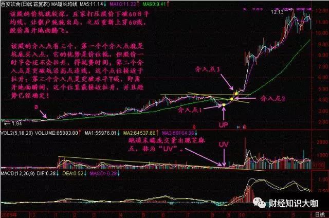 上图的价坑很浅,还不算坑人的。然而大部分庄家不会如此善良,他们会在股价拉升以前来一次大力度的【震仓洗盘】,于是留下一个很深的【UP】,这时候【价坑】的【坑】字,就是坑人的【坑】。