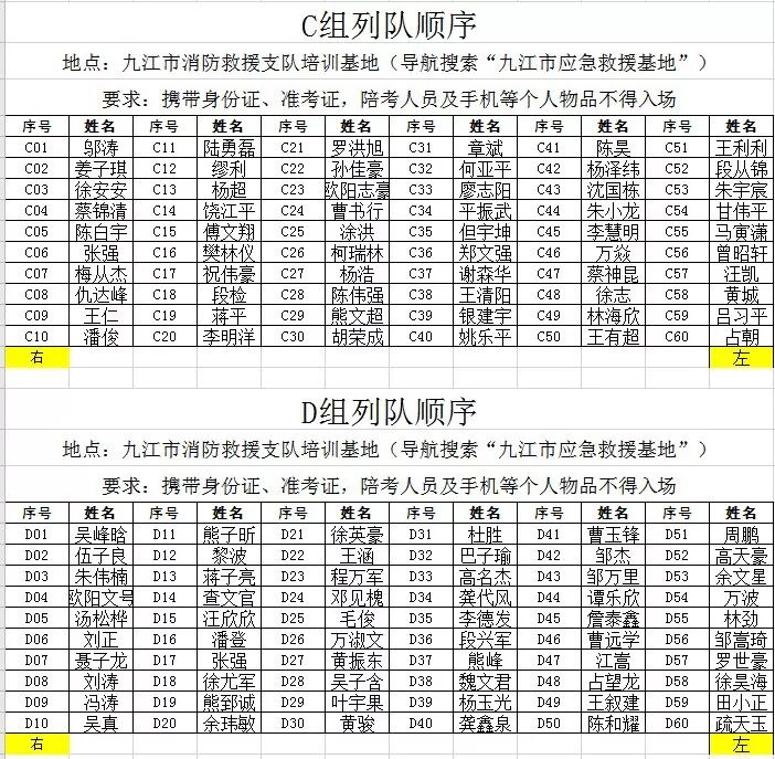 2.10月27日至10月30日,组织体格检查。体检检查医院及地址公布时间为10月26日12时,请及时关注我省在官方消防员招录平台通知公告栏、江西消防及各消防救援支队微信公众号发布的体检医院名单及地址信息。招录对象在体检前3日要禁止饮酒,体检当日早晨空腹前往指定医院。具体体检批次及安排以各市消防救援发布的信息为准。