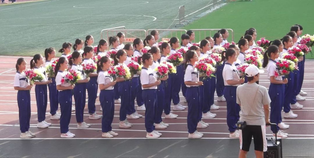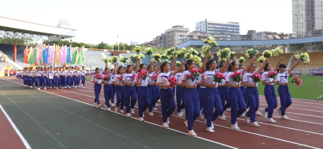 10月17日是广州四中教育集团龙津、逸彩、聚贤三个初中校区田径运动会的日子。早上阳光明媚,微风和煦,首先由龙津校区徐东华副校长对本次运动会致开幕辞,广州市第四中学黄少斌副书记宣布校运会正式开始,开幕式以国旗队同学的出场拉开帷幕,接着是校旗队、鲜花队和彩旗队同学的出场。五颜六色的鲜花和彩旗与旁边的茵茵绿草相得益彰,分外好看。