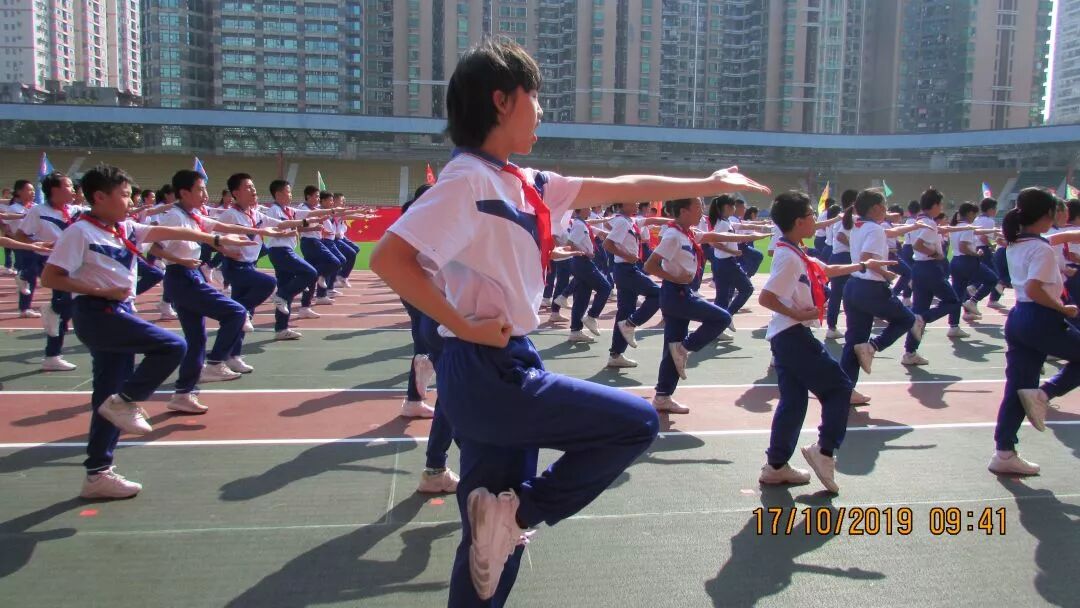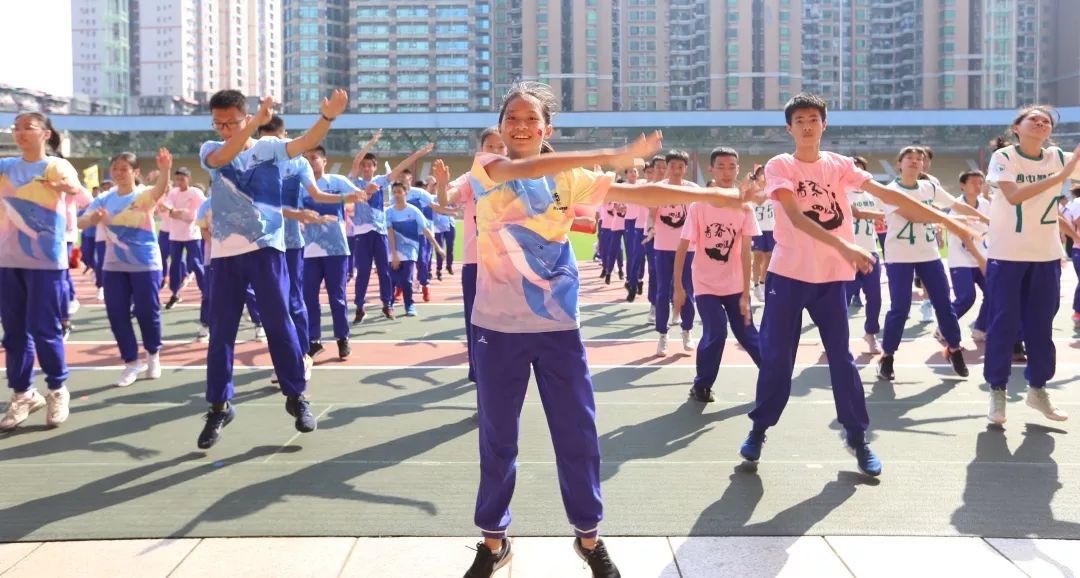 高潮一波接一波,各班出场式结束后,龙津校区的同学们带来篮球操展示。同学们手疾眼快,把手中的一个个篮球转出不同的花式。铿锵有力的拍球声,震动着整个运动场,全场瞬间鼓舞起来。接着是康王校区初一学生的军体拳,每招每式都有板有眼,动作整齐划一,喊出的口号更是震耳欲聋,全场叹为观止,精彩的开幕式在一段充满朝气活力的韵律操《青春飞扬》中结束。