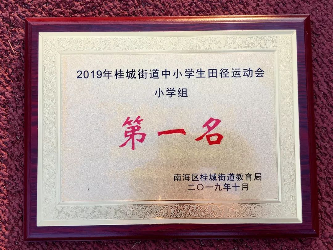 在刚刚落幕的2019年桂城街道中小学田径运动会中,我校田径队健儿经过两日的激烈角逐、奋勇拼搏,勇创历史性的辉煌成绩,荣获小学组团体总分第一名!