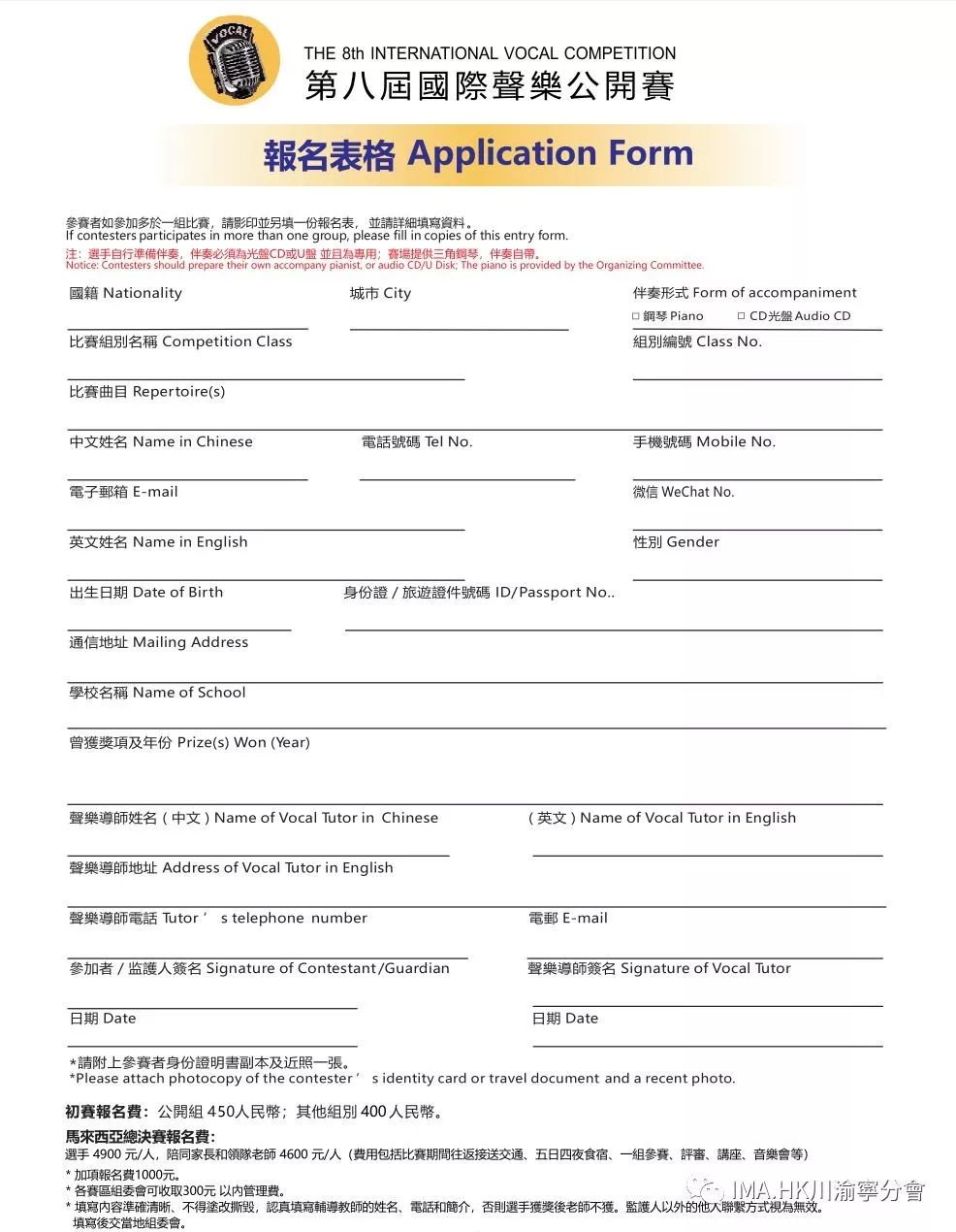 1、所有参赛组别,只需演唱一首歌曲;2、所有歌剧、美声、民族类歌曲组别,均需自备钢琴伴奏人员。其余组别可自备音乐MP3伴奏。五、报名微信号: