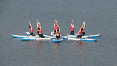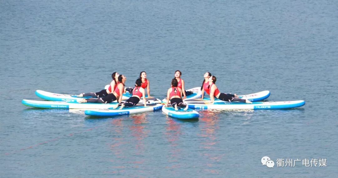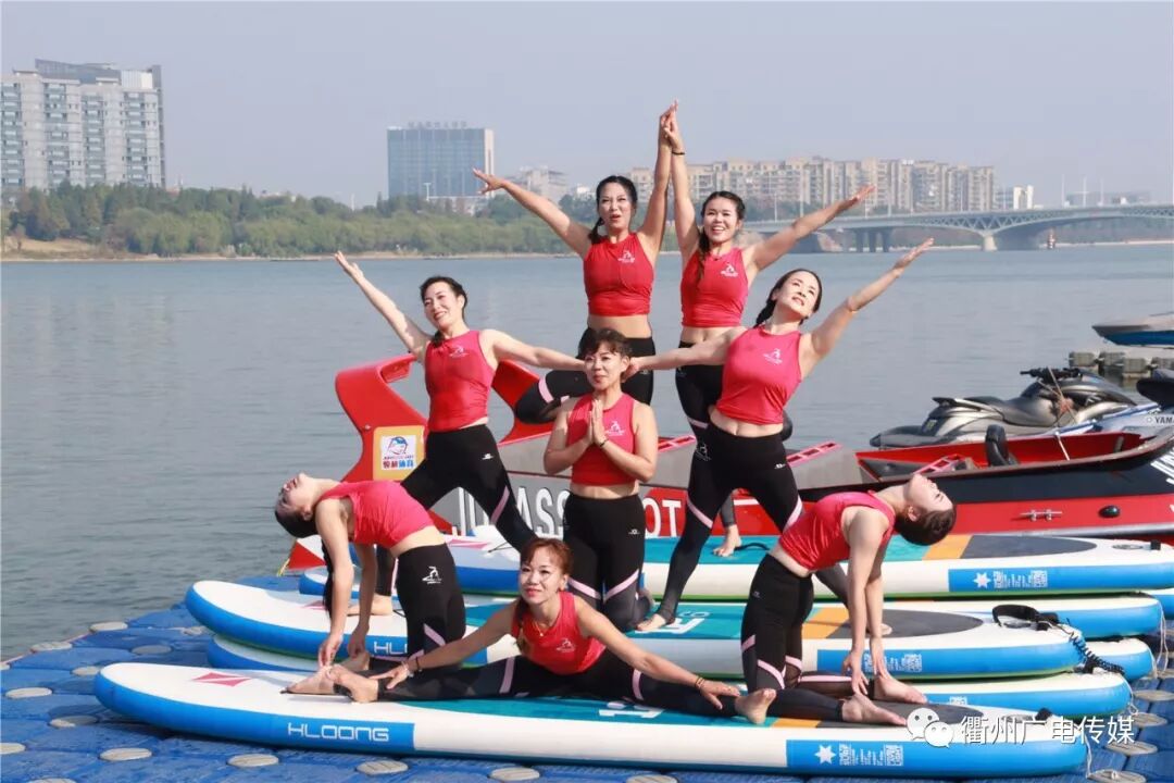 开幕式上,8位瑜伽爱好者在信安湖上演绎了一场水上瑜伽秀。