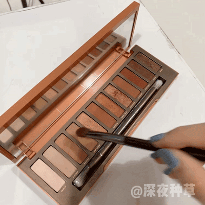 正确的方法是,在沾取眼影后轻轻敲一敲,抖去多余的眼影(顺便也可以假装自己很pro的亚子),涂抹后用一把干净的晕染刷来回让边缘过渡自然。?