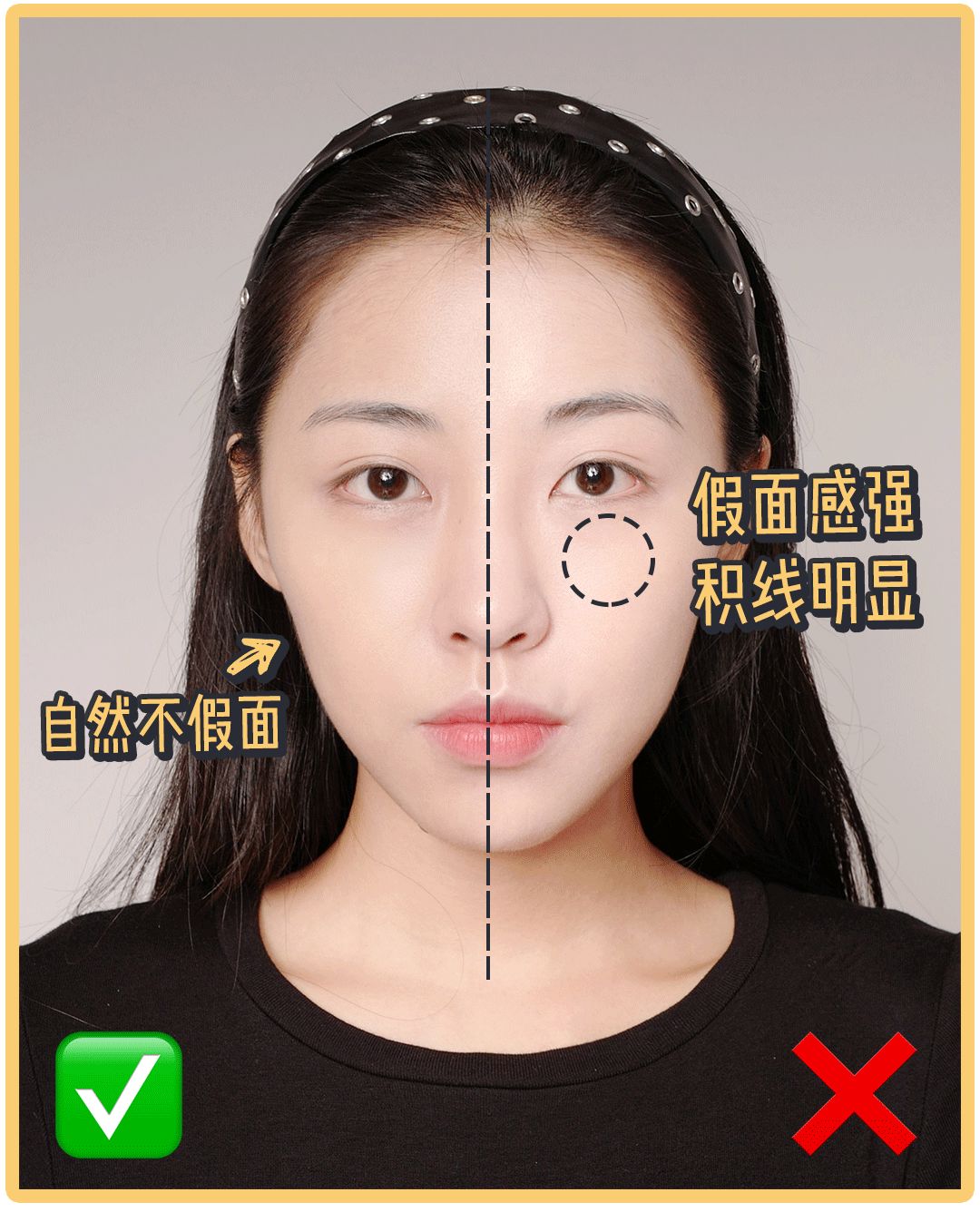 选对粉底色号的左脸,底妆看起来很自然又高级,就像自己本来皮肤就这么好,色号太白的右脸,脸和脖子有明显的分界线,还会把脸显得又平又假,而且眼下的积线问题也被无限放大,崔崔说感觉比素颜的皮肤看起来还糟,想立马卸妆。?