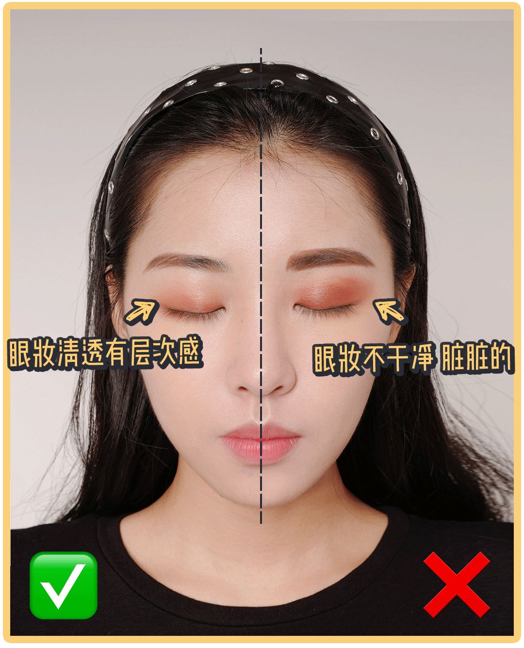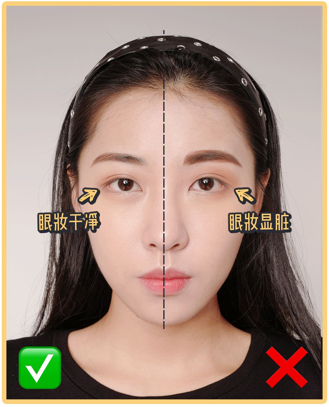 两边的眼妆涂抹的范围不同,对比起来是不是左边的更干净舒服。?