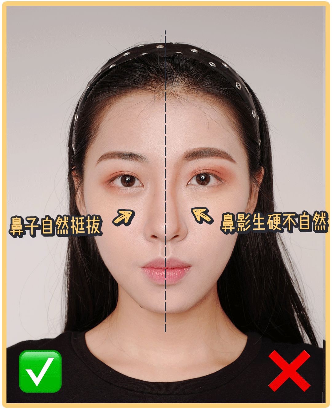 对比下是不是发现,左边的鼻子看起来好似没有画什么,却有自然隆鼻的效果,无敌心机。右边的鼻子看了只想问:小姐你有事吗