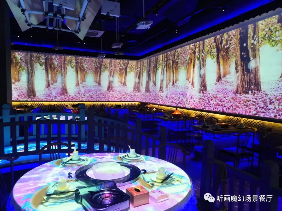 而听画餐厅不同,它的科技造景模式,全沉浸艺术体验,让您可以身临其境感受到科技的魅力。