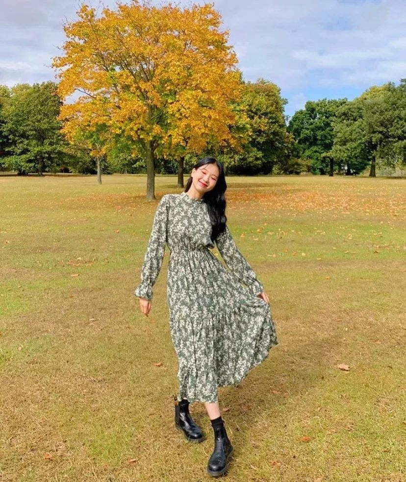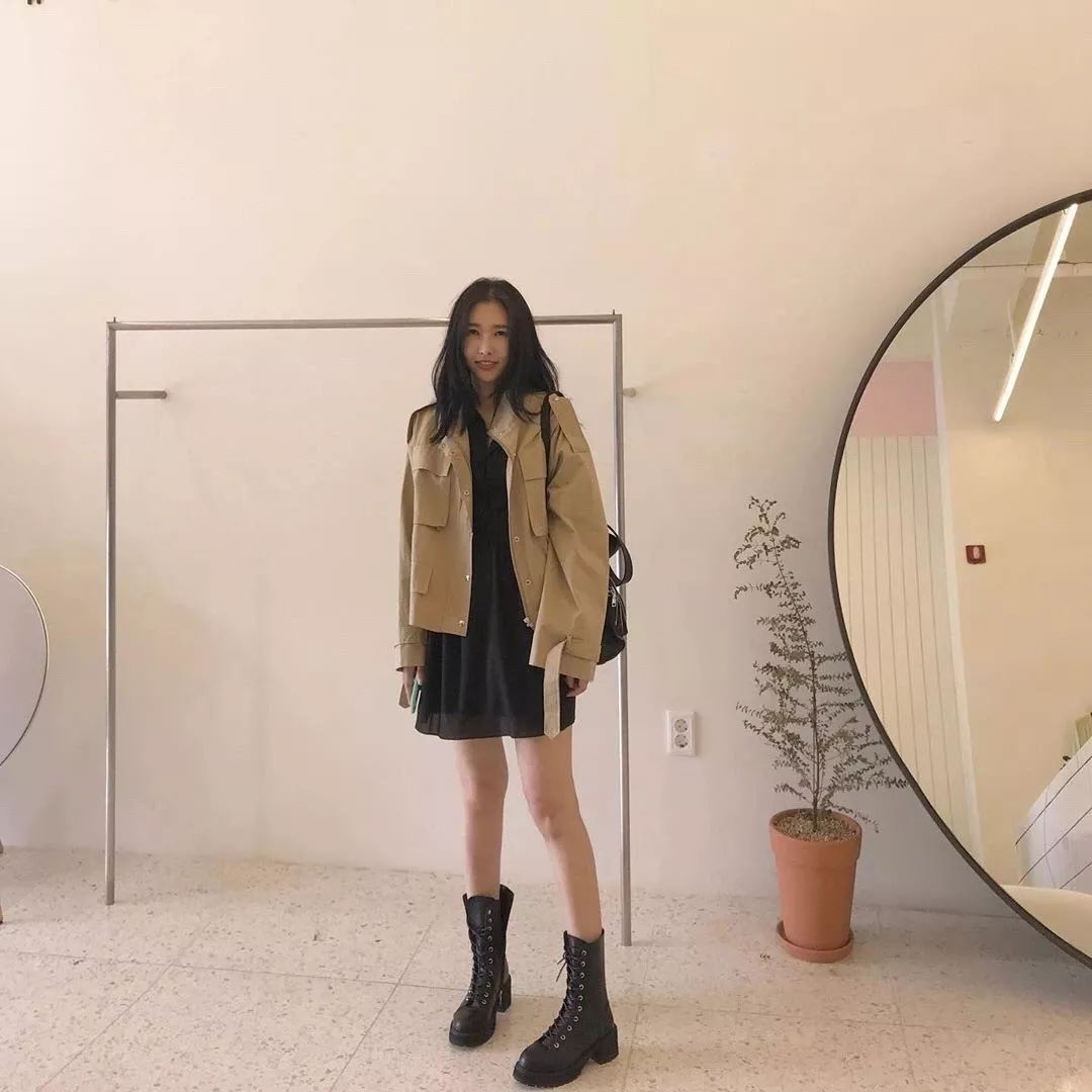 连衣裙+马丁靴可以说是今秋的王炸cp了,无需费力思考如何搭配就能让你轻松美上天。