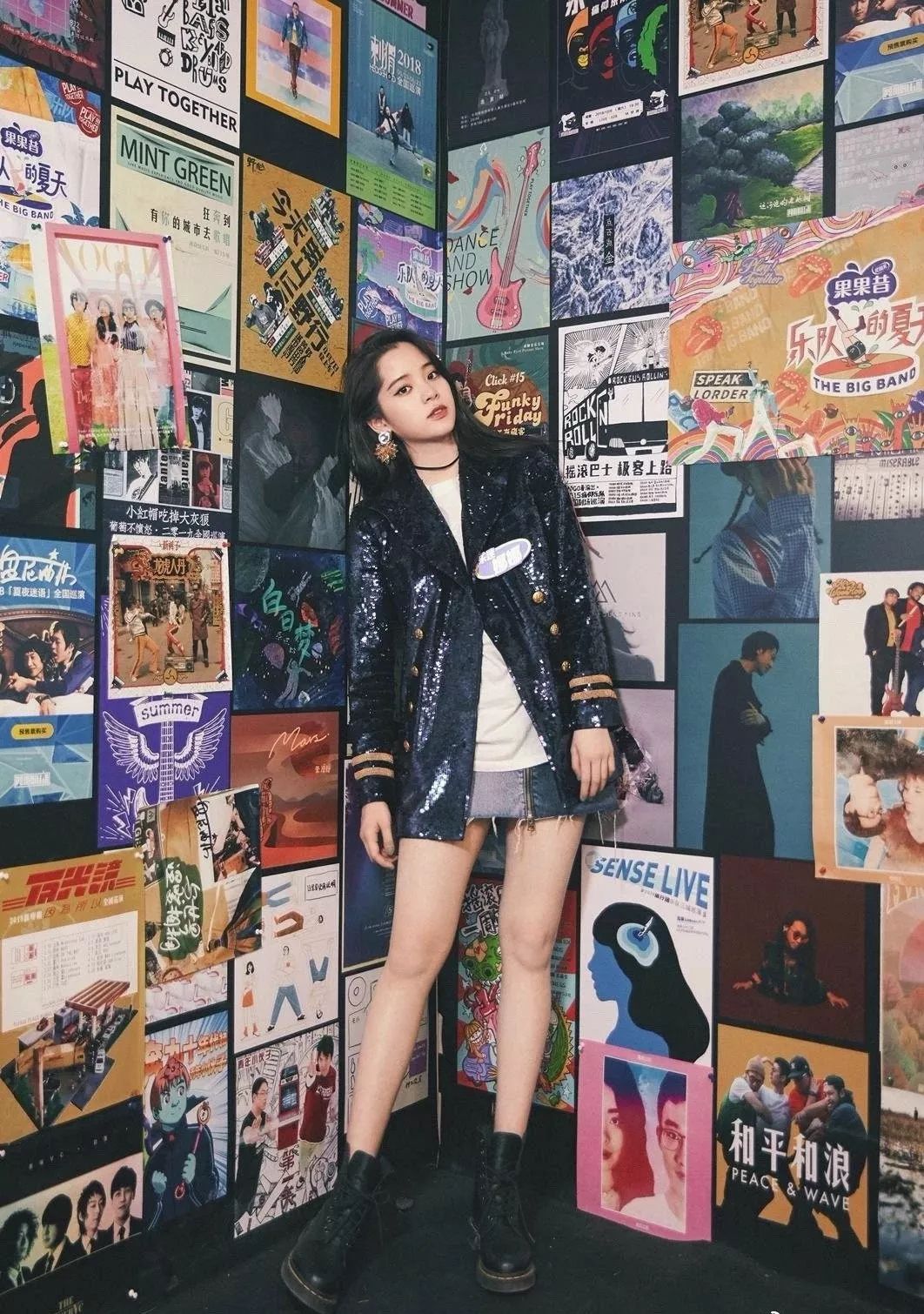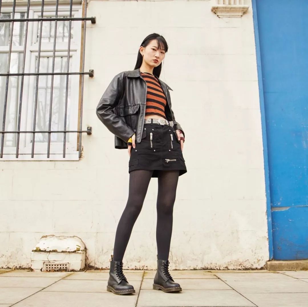短裙+马丁靴可谓是少女的爱了,这两者组合又甜又酷,整体look充满青春与活力。