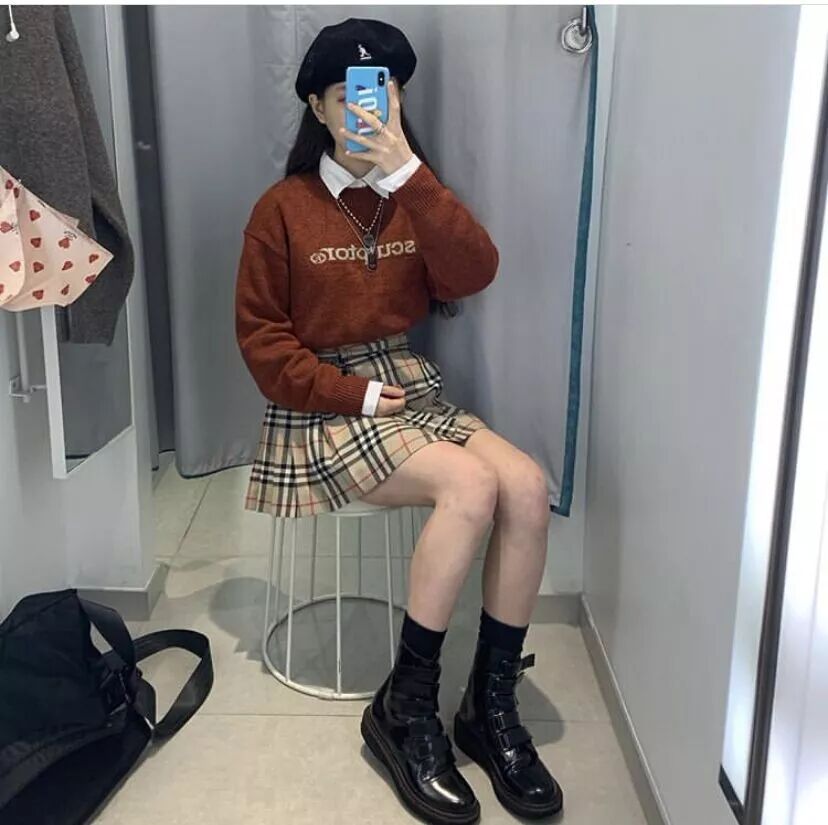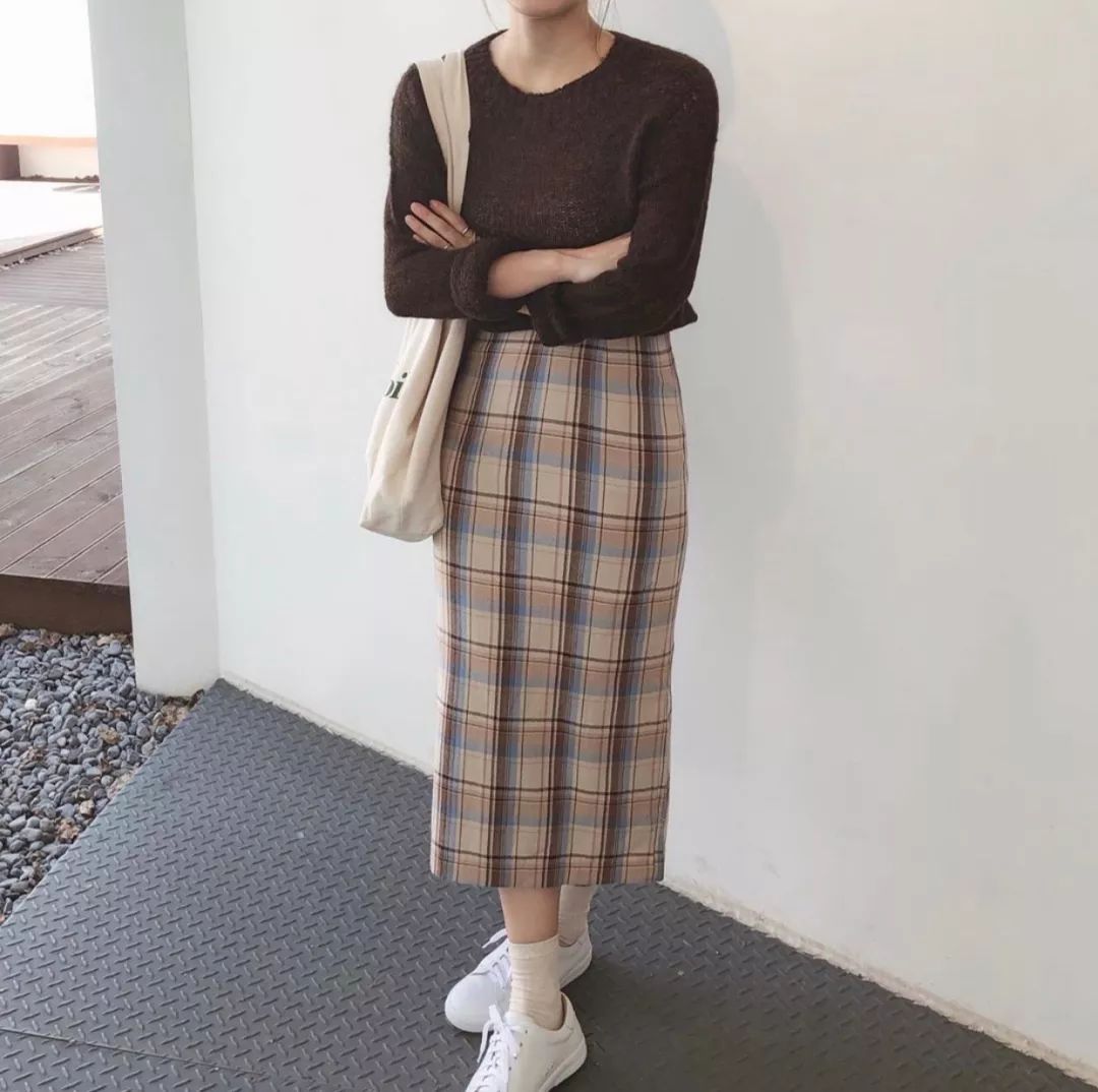 更冷一些的时候,衬衫外面叠加一件毛衣,配上一条格纹裙就很显嫩,让你秒变毫无攻击力的软萌女孩。