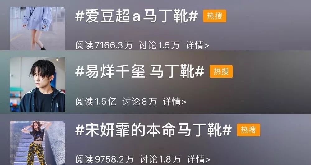 不管是明星爱豆还是时尚博主,都在穿,那就是——马丁靴,它频繁登上热搜,风刮的巨大。
