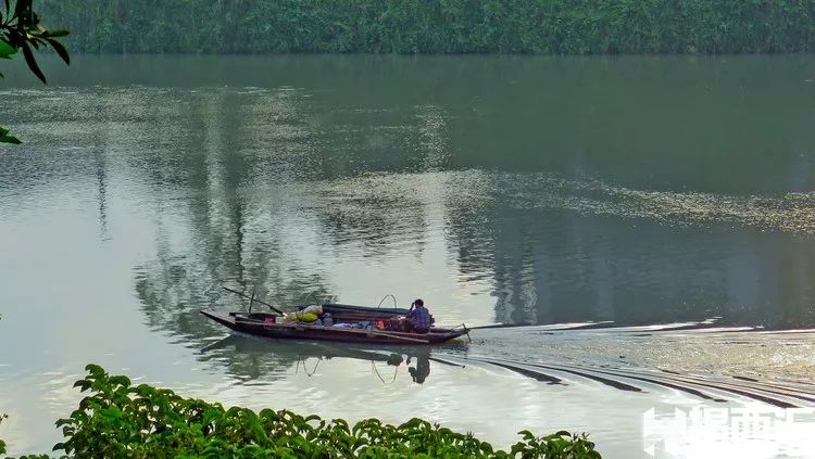 榕江棉湖段的一叶孤舟,有点像是西游记开头,孙悟空撑孤舟的场景,其实,这是一位农民兄弟撑着竹排到棉湖沙壩尾赶集卖竹子,竹排上放着一辆单车,目的是把竹子卖光后,可以骑单车回乡