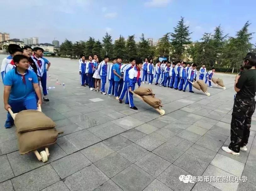 体验“抬担架救伤员”“独轮车送军粮”“投手雷炸碉堡”等3个项目,在充满趣味性的活动中,激发学生们的爱国情感。