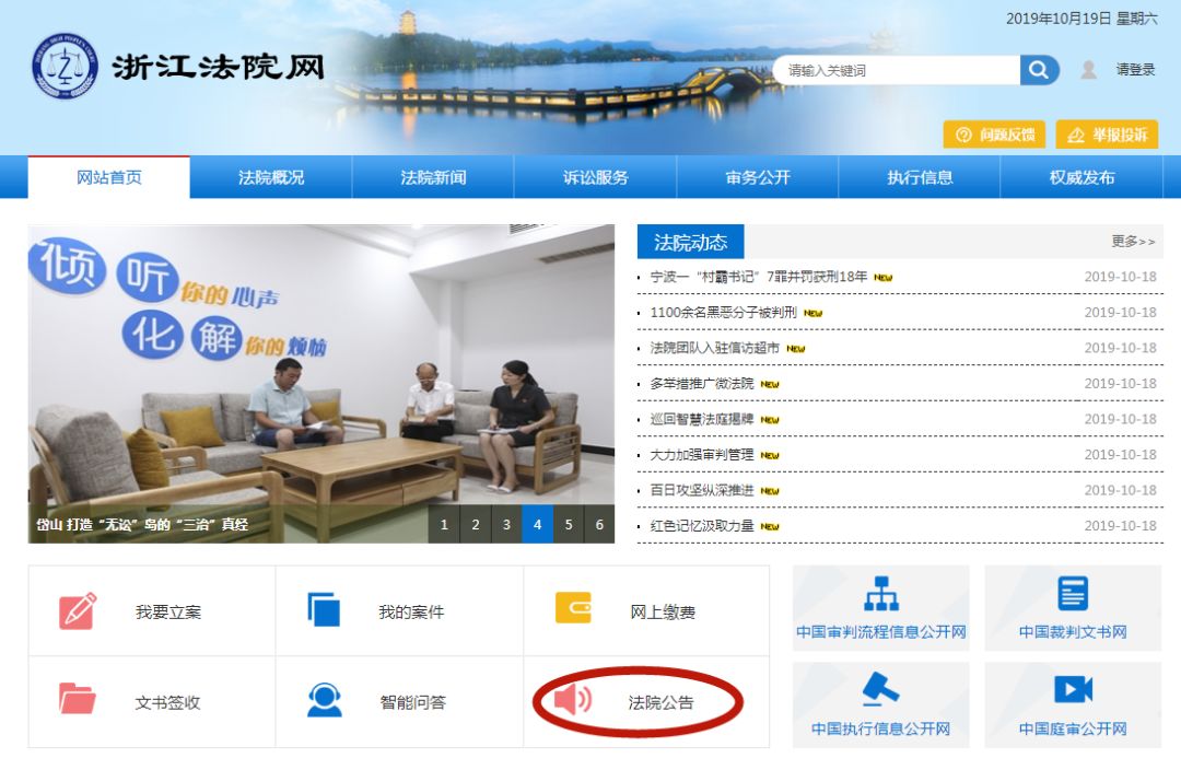 点击法院公告,进行预约!