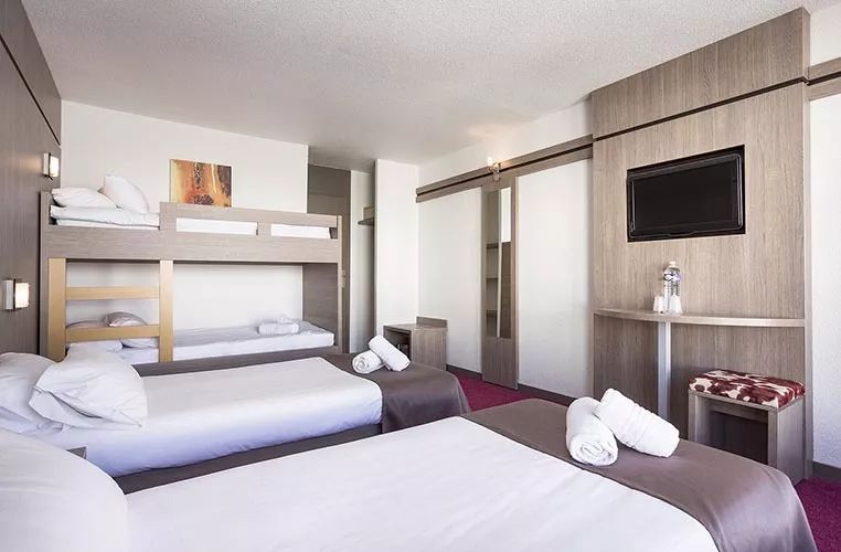 La Plagne酒店提供2至6人的客房,配备互联网,部分客房设有露台或带家具的阳台,可饱览蒙塔尔伯特(Montalbert)的壮丽景色,享受La Plagne的田园风光。酒店的儿童俱乐部设备齐全,孩子们也能尽情玩乐。