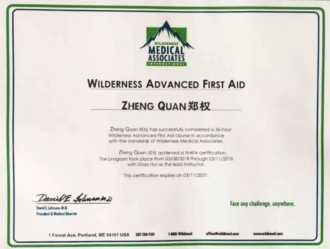 1、嘉华领队都具有国际野外医学会急救资质和经验,急救资质是欧美户外领队必备资质,无急救相关资质无法带队,更不能考取任何教练资质,我们一直遵循国际标准。