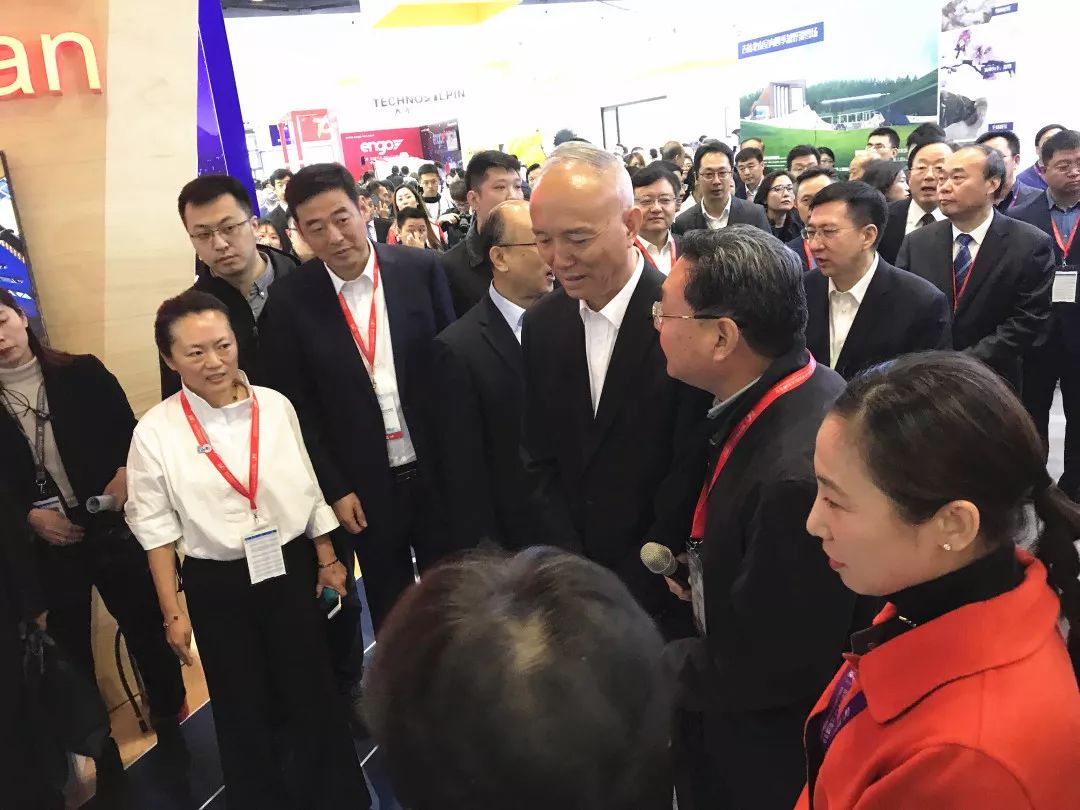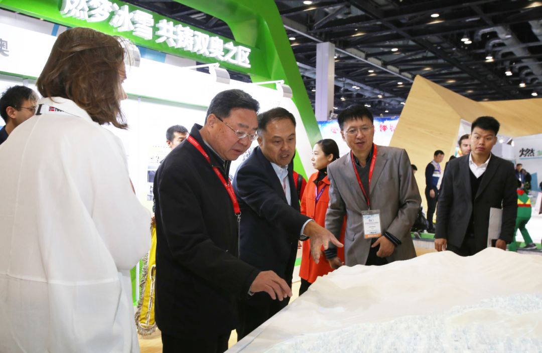↑10月17日,石景山区委书记常卫到冬博会石景山区展台察看会展工作情况。
