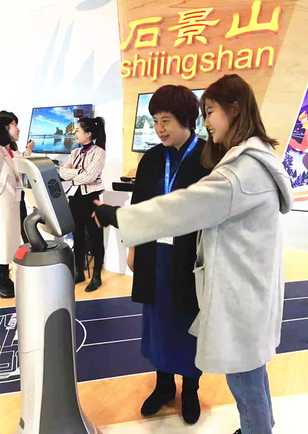 在保留精美别致的雪花盘扣、剪纸等非遗文化展品外,引入区内企业猎户星空、枭龙科技、中译语通、爱柯?艾尔豪斯的自主开发产品技术,增加了智能机器人、滑雪VR/AR互动体验、实时翻译等智能科技内容,采取世界先进的二氧化碳直冷制冰技术,现场搭建了真冰冰壶体验场地,众多体验项目吸引了众多冰雪爱好者的关注,更让人们切身感受到石景山区作为双奥之区,围绕“体育+”、高精尖产业转型发展的变化和大力发展冬季体育运动特色先行区的决心。