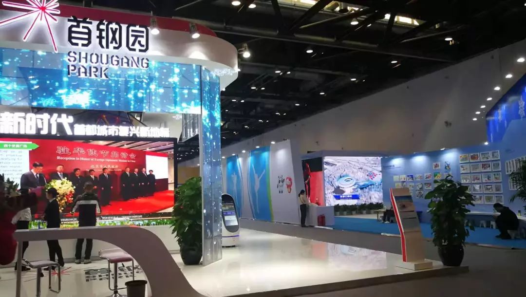 展区中,石景山将传统展示与智能科技相结合,设置服务保障冬奥、城市功能提升、全民冰雪普及、产业融合发展、非遗文化传承等多个特色板块,全方位展示石景山区借势冬奥转型发展的丰硕成果。