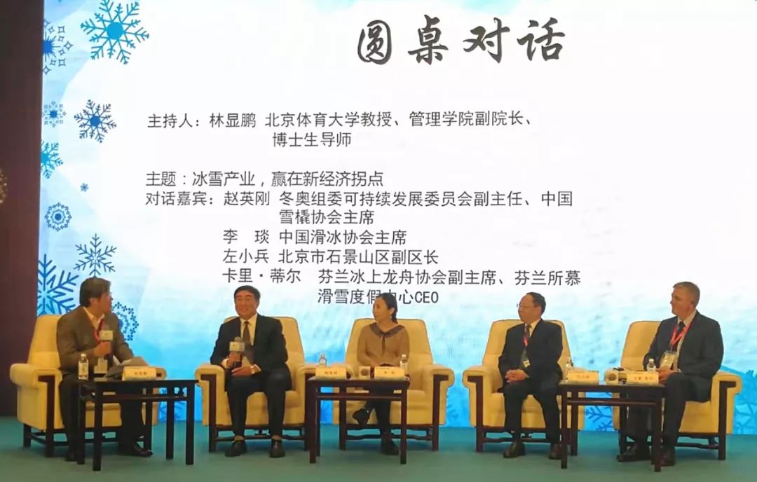 冬奥组委可持续发展委员会副主任、中国雪橇协会主席赵英刚,北京体育大学教授、管理学院副院长、博士生导师林显鹏,中国滑冰协会主席李琰,石景山区副区长左小兵,芬兰冰上龙舟协会副主席、芬兰所慕滑雪度假中心CEO卡里?蒂尔等海内外不同领域的嘉宾,围绕冬奥会对石景山的影响、冰雪行业的现状与趋势、专业冰雪协会的发展、冰雪强国的经验借鉴等进行了热烈的圆桌对话讨论,并围绕冰雪产业赢在新经济拐点的话题,开展头脑风暴和智慧碰撞,为石景山冰雪产业发展献计献策。