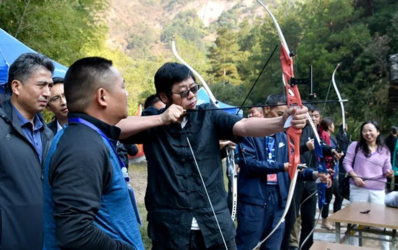 10月18日,“皖鄂赣” 三省十二县(市)体育协作区第42届运动会比赛内容之一的户外攀岩、射箭、飞镖共三个比赛项目,在水吼镇天龙关景区火热举行。市领导蔡婷婷出席。