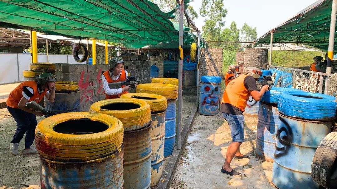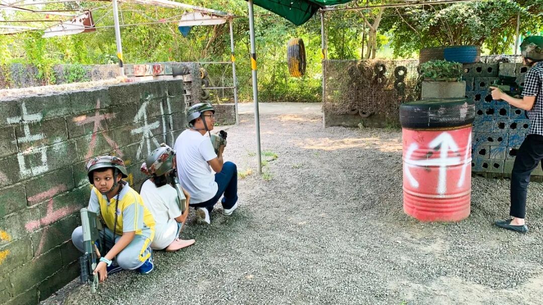 一到CS对决场,教官先帮我们很快地穿戴好战斗迷彩服,紧接着教我们怎样使用枪,交代大家游戏规则,最后按照战斗服上的颜色,将我们编为红、蓝两军。小伙伴们冲冲冲!