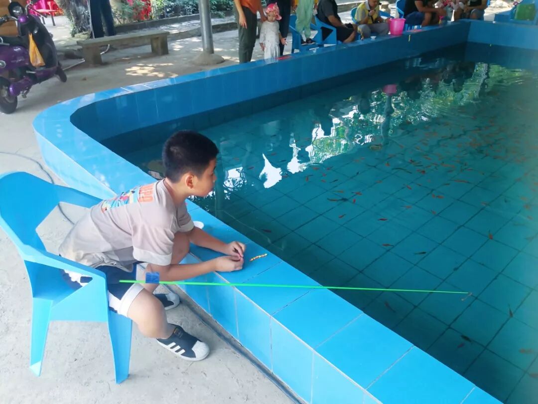 一说到钓鱼,孩子们都欢呼雀跃,兴奋地跑到鱼池边上等候。值得一提的是,钓虾!第一眼看到池子里的虾也有些意外,因为个头很大,在规定的时间里(半小时、一小时)钓到多少就可以拿走多少,而且也没有想象中的那么难钓,nice!