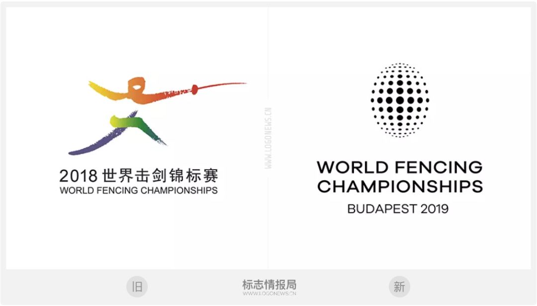 2019年世界击剑锦标赛LOGO图形由多个不同大小的圆点共同组成,体现了击剑锦标赛的比赛赛制结构,即最终只有一个人成为冠军(只有中心的圆点是正圆,其他的圆点为椭圆形)。当然这个LOGO由于圆点过多,会在某些环境中出现识别问题。