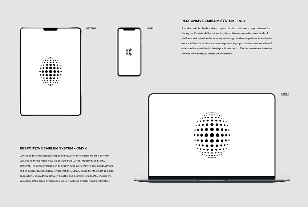 例如将图形缩小到一定范围后,圆点的细节可能会消失。为此,设计师在1cm至5m范围内开发了响应式LOGO,最终让LOGO能够在各种平台上(不论大小)都能传达相同视觉和故事。
