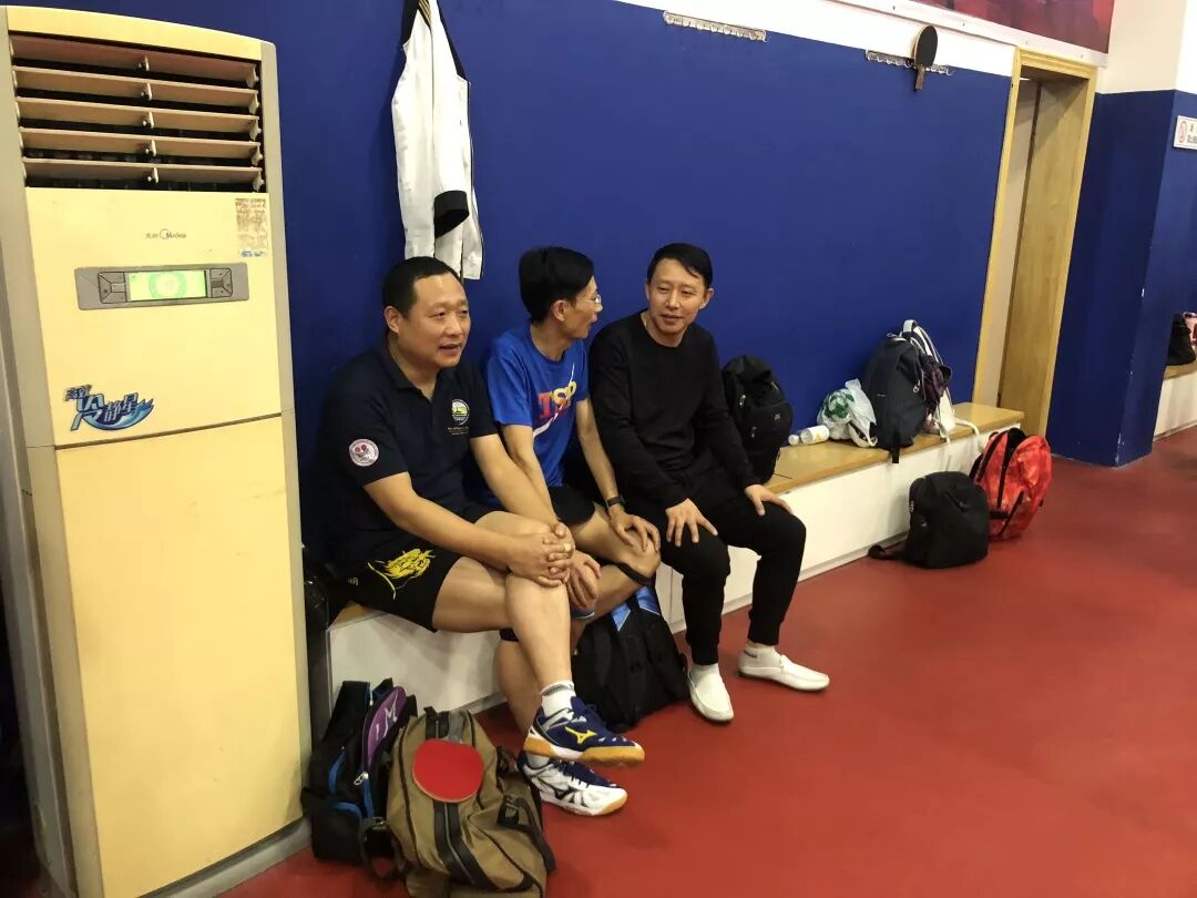 19日是越城区首届运动会乒乓球比赛的第二天,大家白天打完比赛,不怕劳累,依然晚上6:00准时参加基地双打周赛。