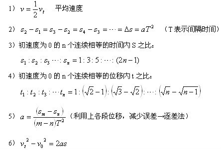 (5)初速无论是否为零,匀变速直线运动的质点,在连续相邻的相等的时间间隔内的位移之差为一常数:△s = aT2 (a----匀变速直线运动的加速度 T----每个时间间隔的时间)