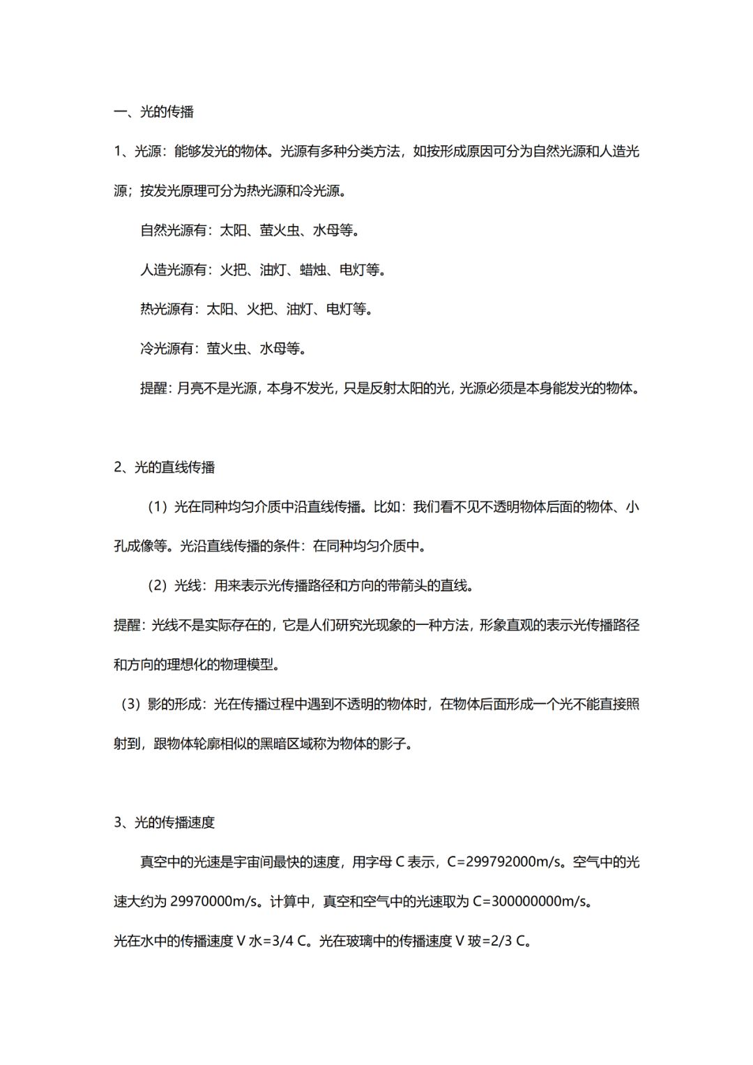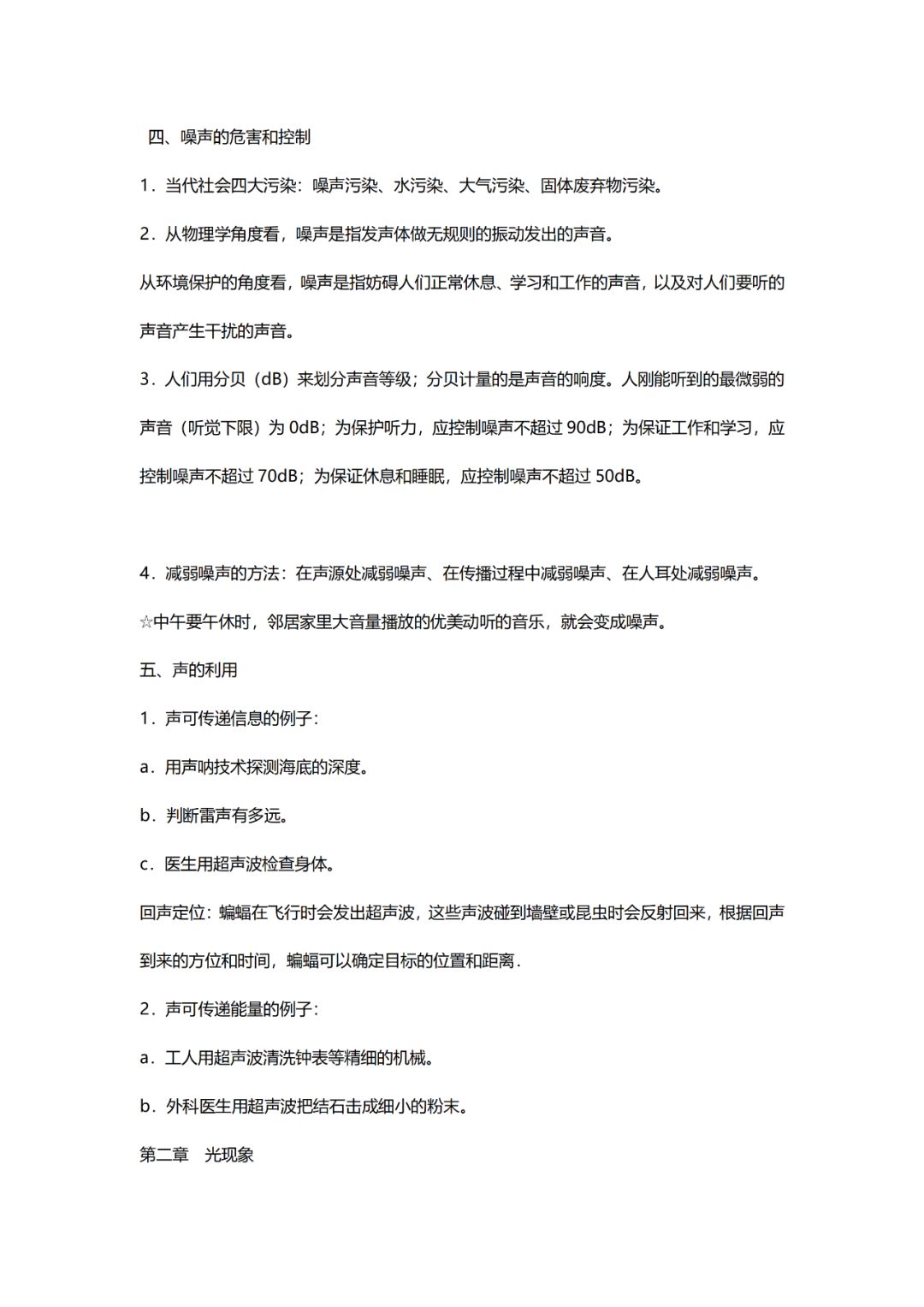 初中物理八年级上期中考试知识点
