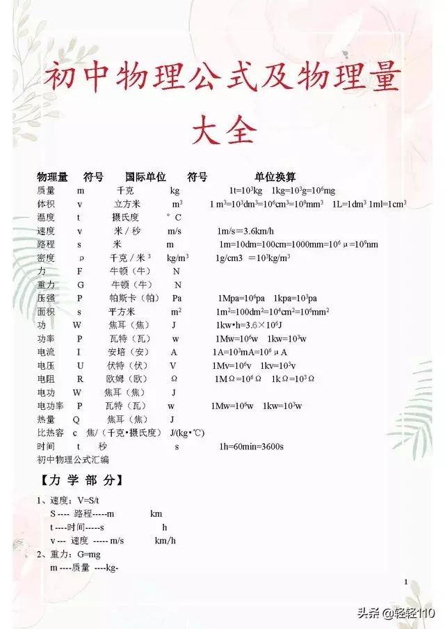 这里也给大家整理了初中物理的常用公式,不管怎么说,该记的还是得去记,不然到时候想用都用不了。衡中特级物理教师:这些公式用熟了,初中考试轻松90分!