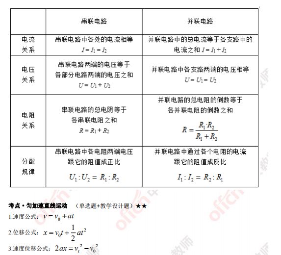 教学片断包含节选型和专题型两种,前者指从教材中选取某一片断教学,教师针对片断设计环节完整的教学(如教学人教版高中物理必修二第一节曲线运动);后者选择某一专题或者知识点进行教学(如讲解摩擦力做功的特点)。这两种教学片断都具有的基本特征:实践性、完整性、虚拟性和与预设性。(三)教学思路教学思路是教师讲授某个知识点的基本授课思路。教学思路通常是针对某一重点或难点而设计的,可以以陈述的形式讲解“教什么”“怎么教”“为什么这样教”。有时教学思路也可以采用教学片段的形式呈现。(四)教案设计教案即课时教学方案,是物理教师在备课过程中的一种创造性劳动成果。教案一般是由教学目标、教学重难点、教学方法、时间安排、教学内容、教学过程等综合编成,是教师备课、上课的依据,是检查备课质量和教学效果的参考。教案要能反应教学的主要内容和教学方法,并且能反映出师生教与学的动态过程。从某种意义上来说,教案实际上是课程实施中的一个决策过程,教师需要回答“教什么”(教学内容)、“怎么教”(教学方法)、“为什么教”(设计意图),对教师做出整体安排。很多人说教资考试难,其实你只是方法不对!复习到现在,你要相信自己的实力,考前需要做的是调整好自己的心态,将老师划得重点反复看看,顺便看一下做过的错题,一定要抓紧好最后的时间去冲刺!