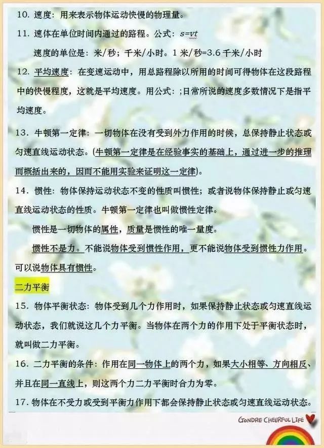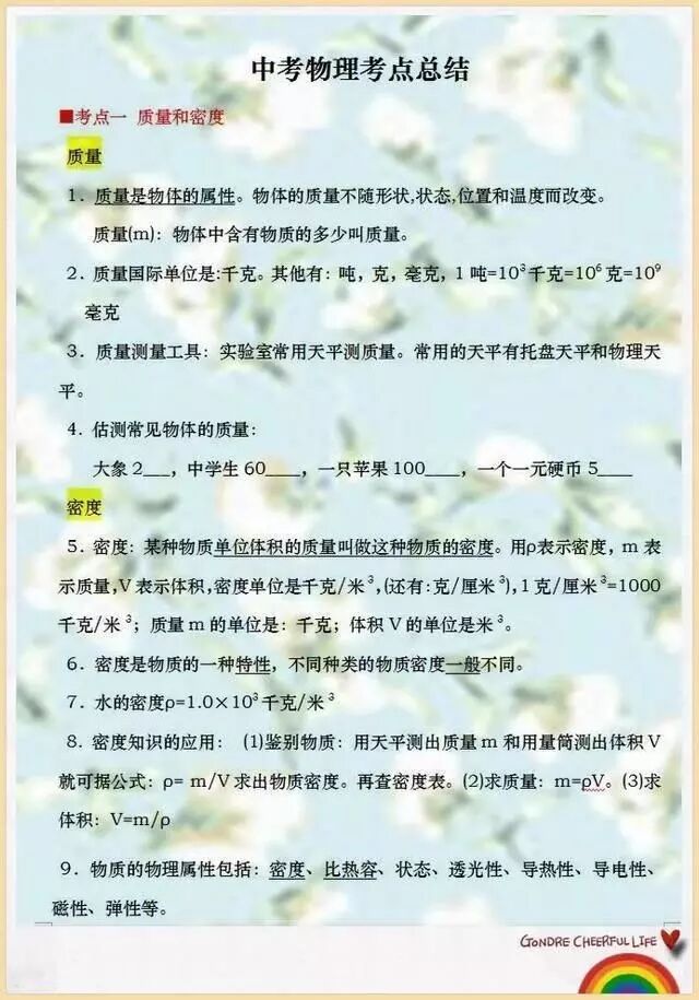 中考在即,未来让孩子们能考一个好成绩,下面为大家整理了一份初中物理考试常考的知识总结,家长可以打印出来给孩子背,争取考试多得分。