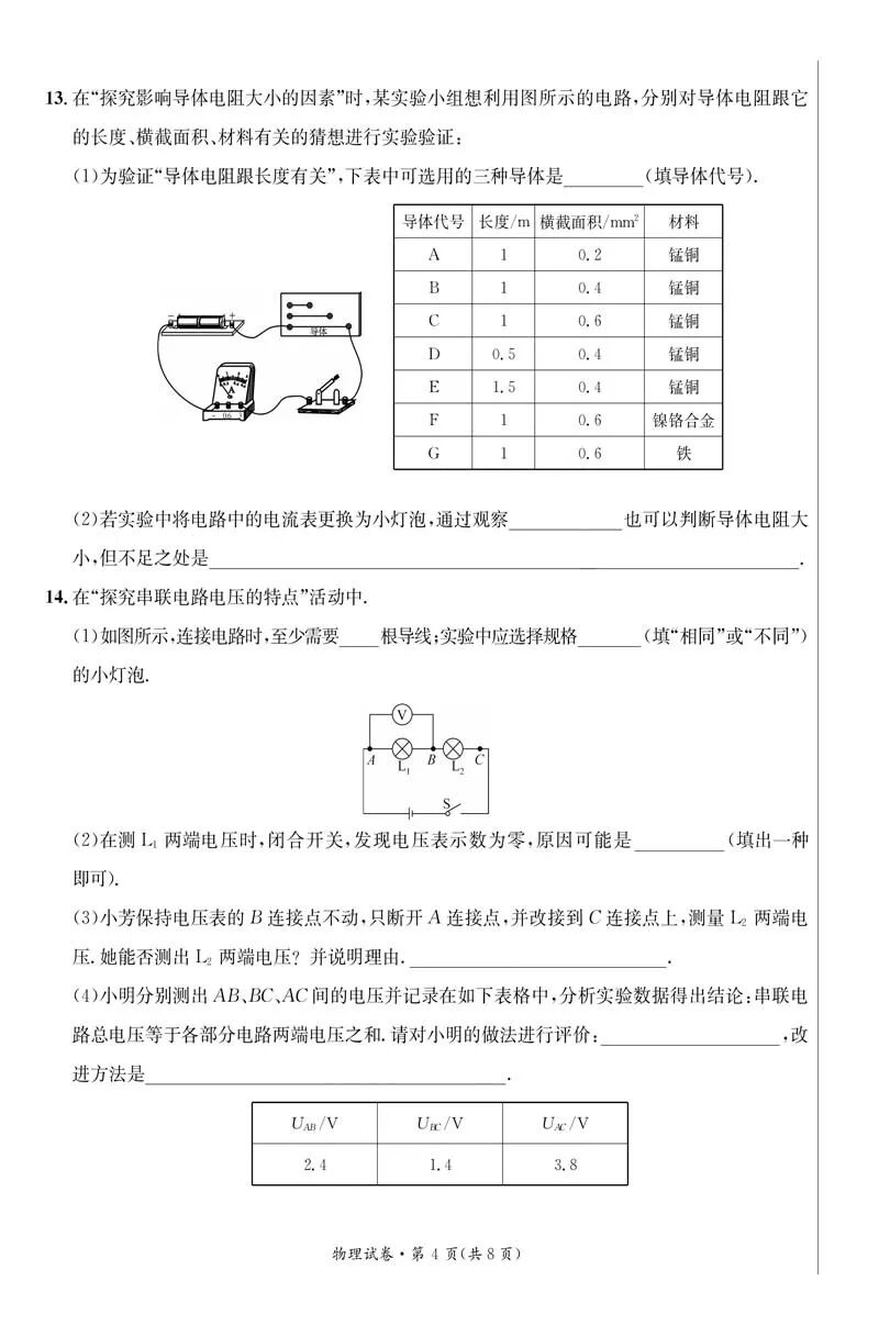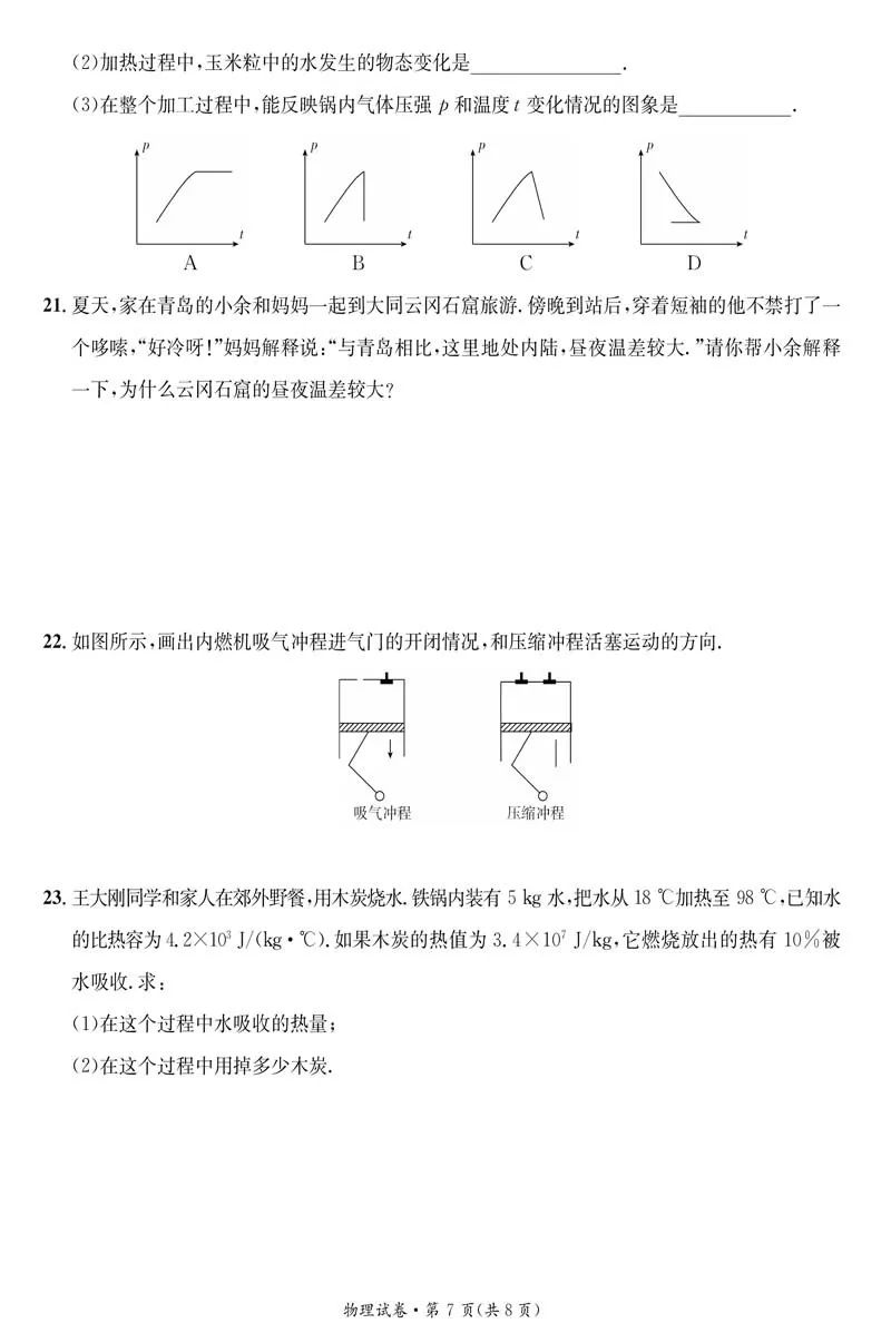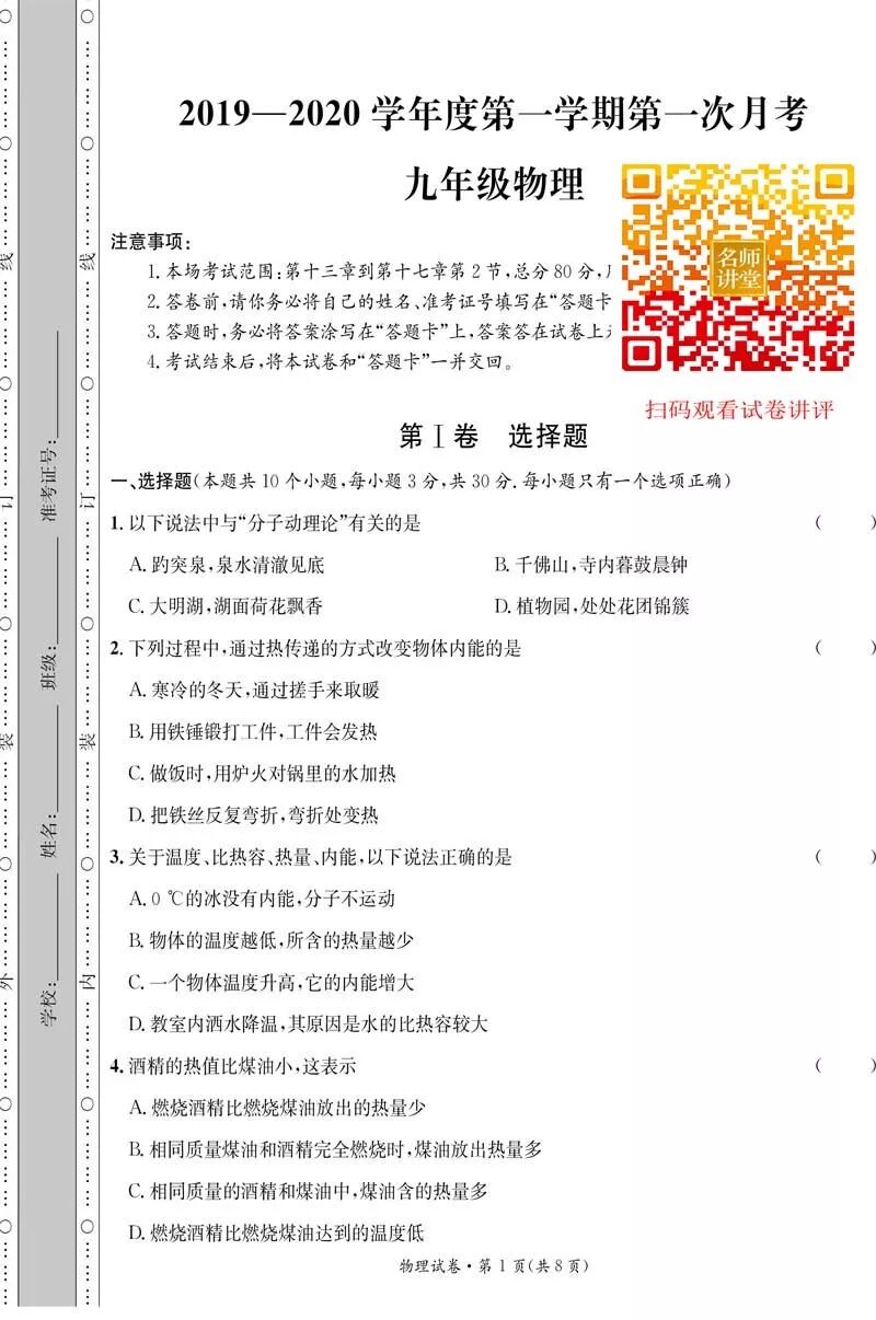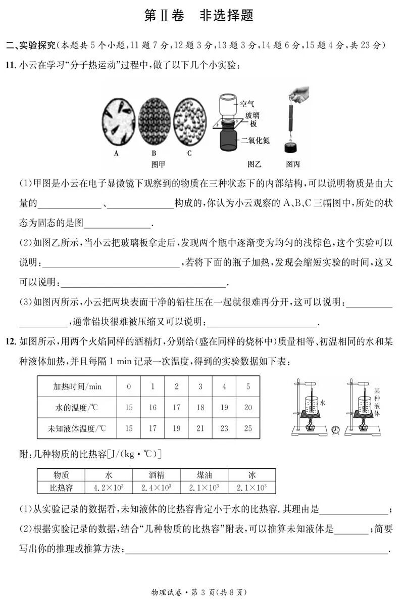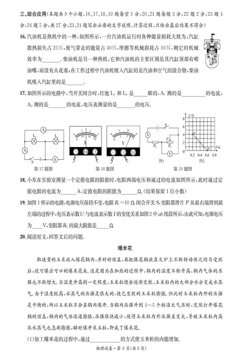 山西临汾九年级第一次月考 物理 试题