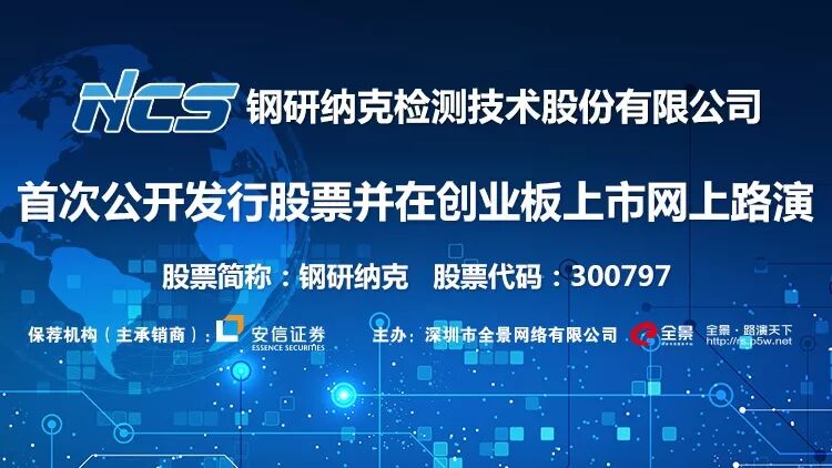 参与嘉宾:钢研纳克党委书记、董事长高宏斌;钢研纳克总经理、党委副书记杨植岗;钢研纳克财务总监、董事会秘书刘彬;安信证券投资银行管委会委员、保荐代表人、经济学博士李华忠;安信证券投资银行部执行总经理、保荐代表人樊长江;安信证券投资银行部执行总经理、保荐代表人张翊维;安信证券投资银行部业务副总裁庄艺青。