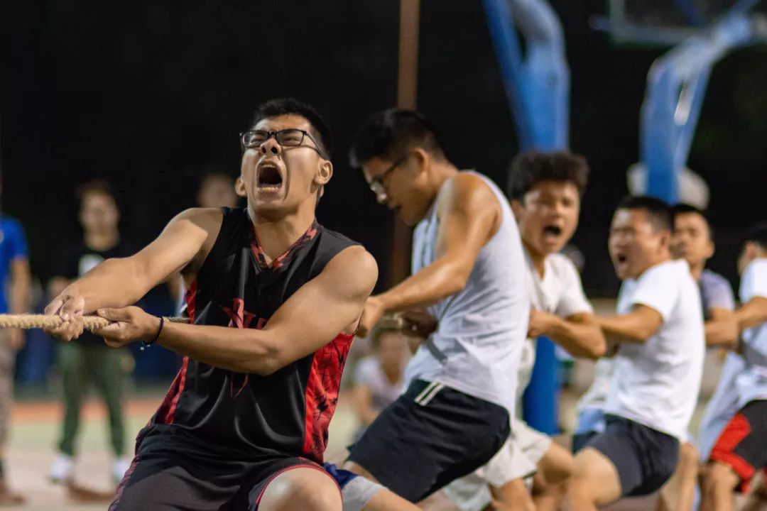 一声又一声的呐喊助威,伴随着裁判的哨声,响亮整个灯光篮球场,不过,这不是篮球比赛,而是一场吨位之间的竞争——拔河比赛!