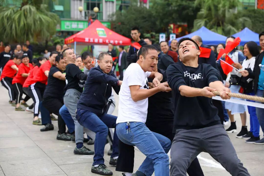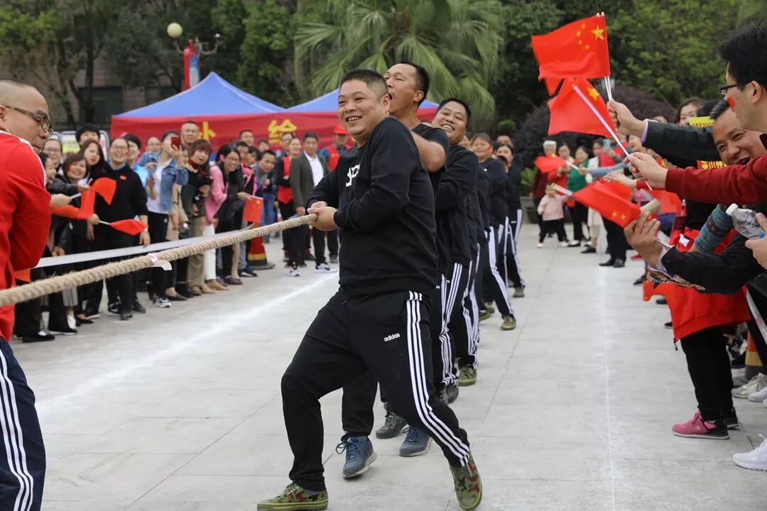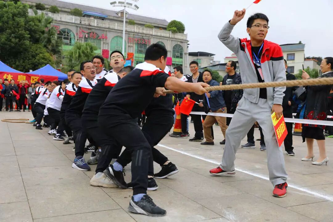 10月18日,中夏广场欢声笑语,热闹非凡,加油声、叫喊声、欢呼声……我县2019年庆“国庆”干部职工拔河比赛在这里举行。县人大常委会副主任、县总工会主席黄多跃,副县长吴荣茂,县政协副主席谭文南参加活动。