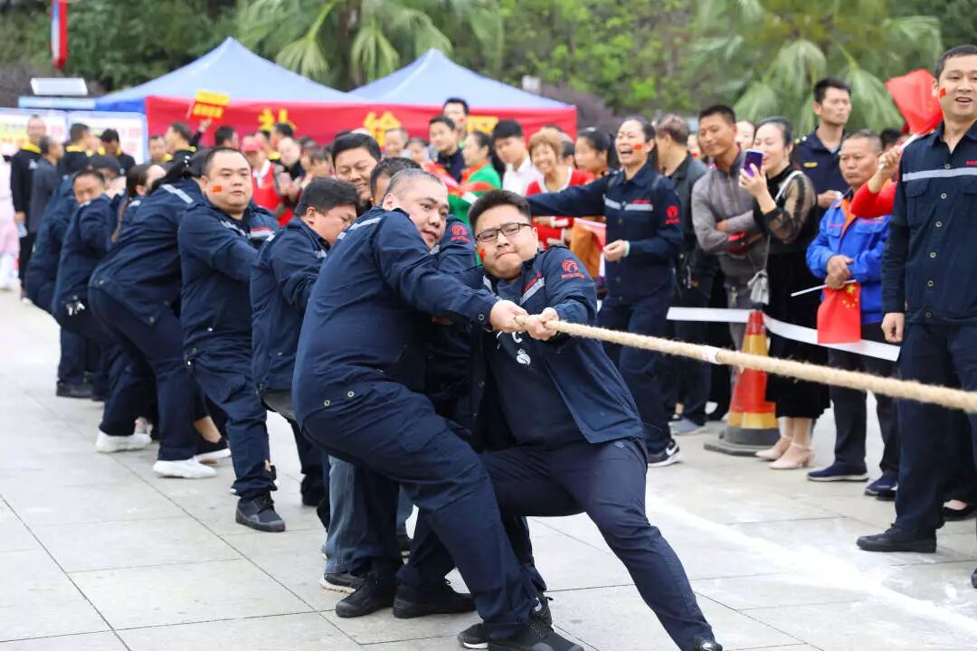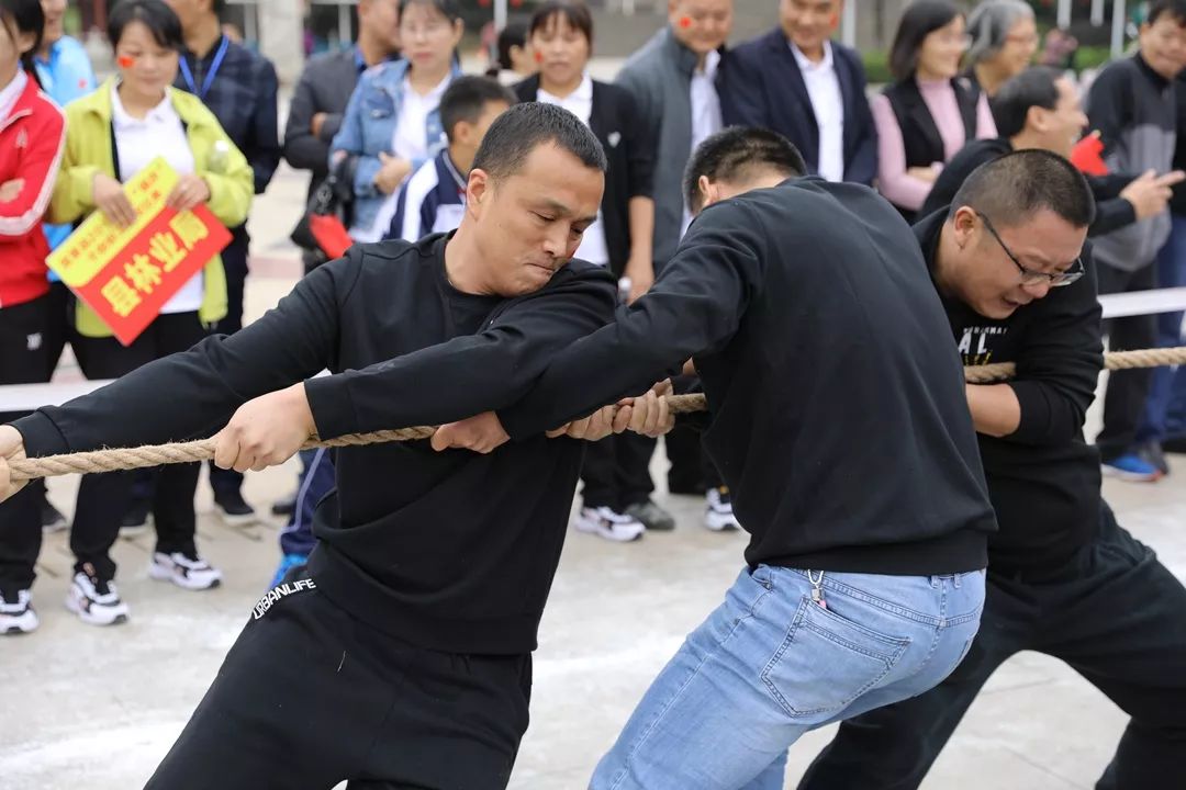 比赛双方稳扎马步,摆好阵势,一声令下,双方立刻展开“厮杀”,赛场上人声鼎沸,喊声震天,气氛热烈活跃。一根拔河绳凝聚着竞赛双方的勇气、智慧和力量,承载着激情、自信和活力。