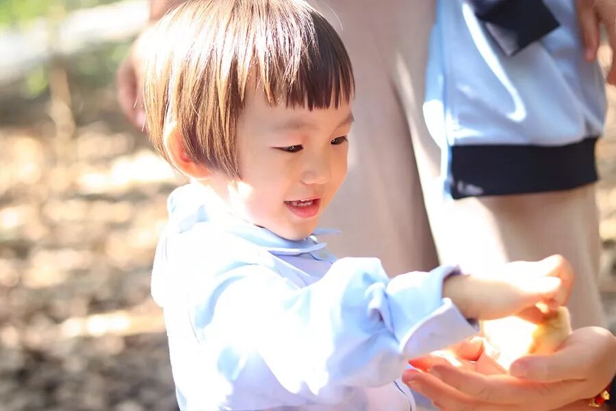 和前面捡鸡蛋不同,这一次都是活蹦乱跳的活物,所以要求小朋友们要格外小心,轻轻的将小鸡宝宝捧在手心。教会他们如何爱护小动物,结交宠物朋友,来一次小小生命之间的萌动~
