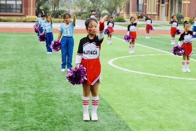 如海浪,此起彼伏;如云朵,变幻万千。张张笑脸,洋溢着青春的热情与欢笑;声声呐喊,传递着无限的活力与张扬!开幕式上,学校舞蹈社团带来了精彩的啦啦操表演。