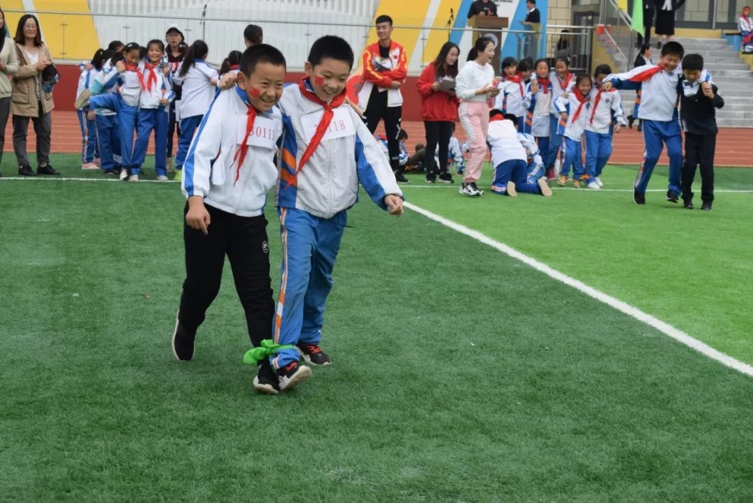 比赛过程中,每一个孩子都积极参与,把自己的最大热情融入到了集体当中,努力为班级体争光的同时也为同学送去了热烈的掌声。暖暖的阳光映着学生们红扑扑的小脸蛋,田径场上回荡着他们的欢声笑语。