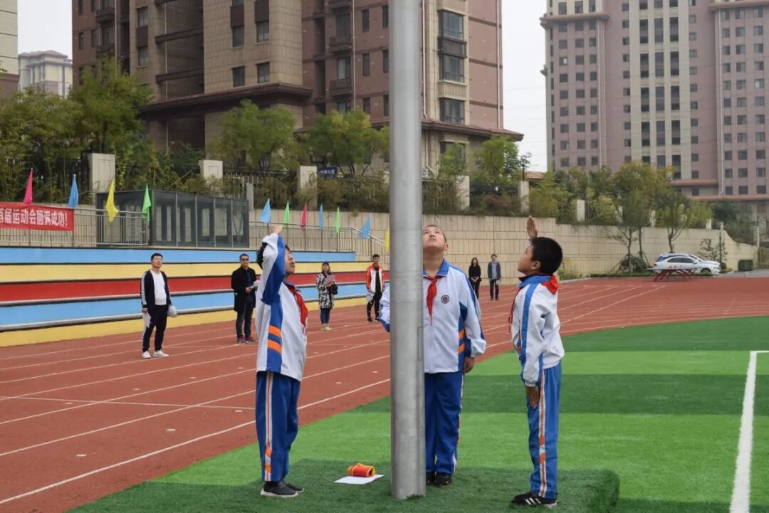 伴着豪迈的《运动员进行曲》,开幕式拉开序幕。师生齐聚操场,升国旗,共唱国歌。
